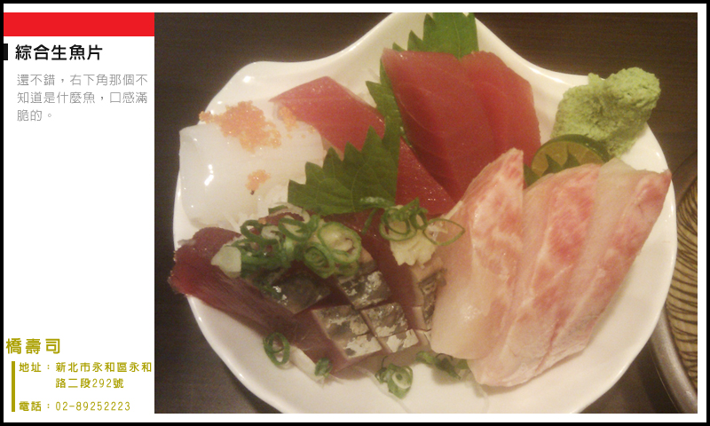 味道普通,但是便宜份量又划算,想吃生魚片解饞卻又沒錢的時候,完全是首選